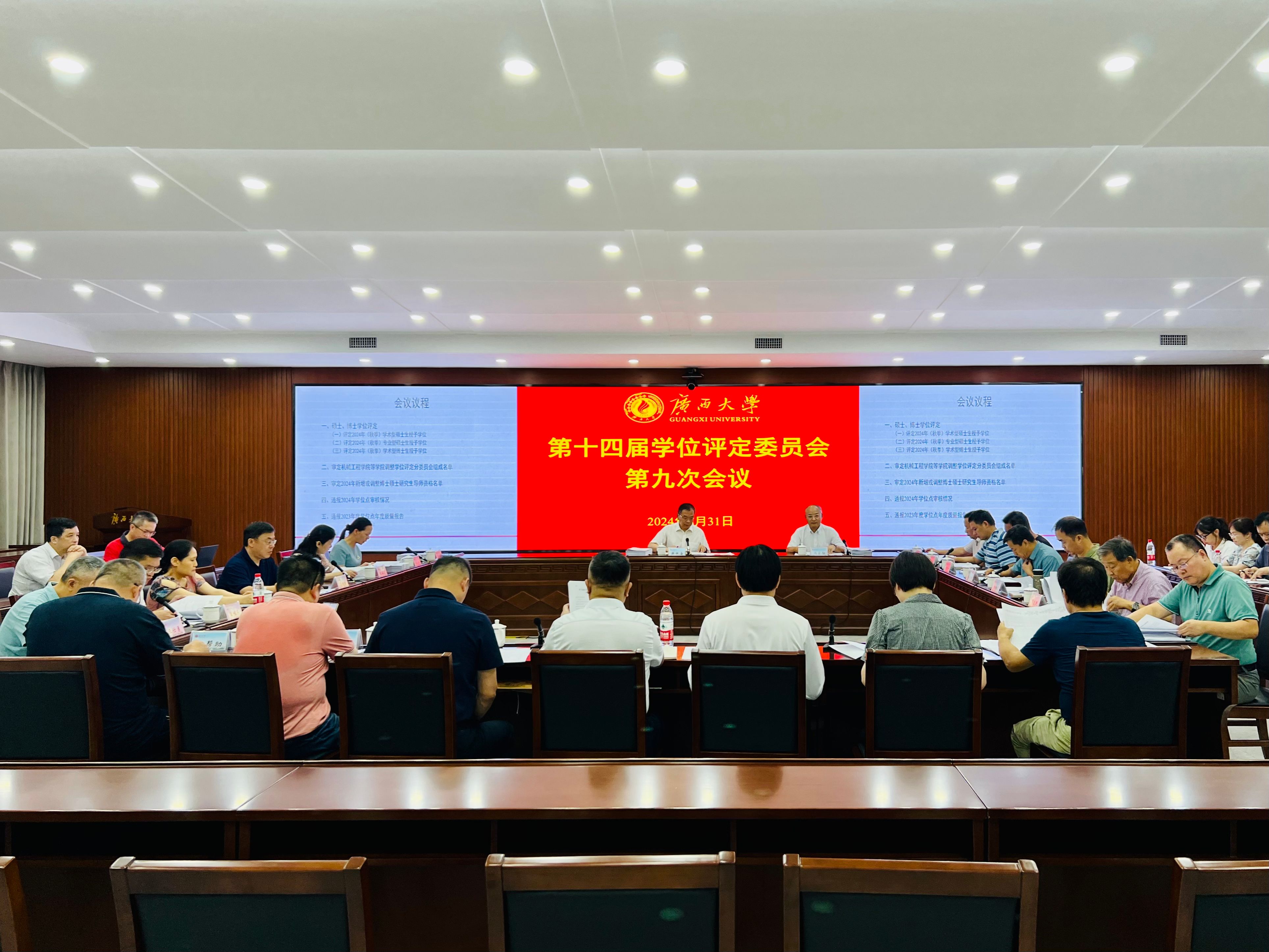 2024年8月31日,我校召开beat365手机版官网入口第十四届学位评定委员会第九次工作会议。校长、校学位评定委员会主席韩林海主持会议,副校长、校学位评定委员会副主席冯家勋等共22位委员参加会议。