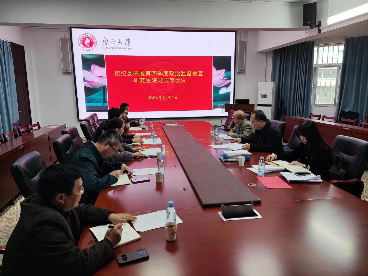 12月4日,校纪委监督小组,戴永恒、李高南、温健纯一行三位同志到研究生院开展第四季度政治监督检查。研究生院领导班子、党支部支委参加了会议。