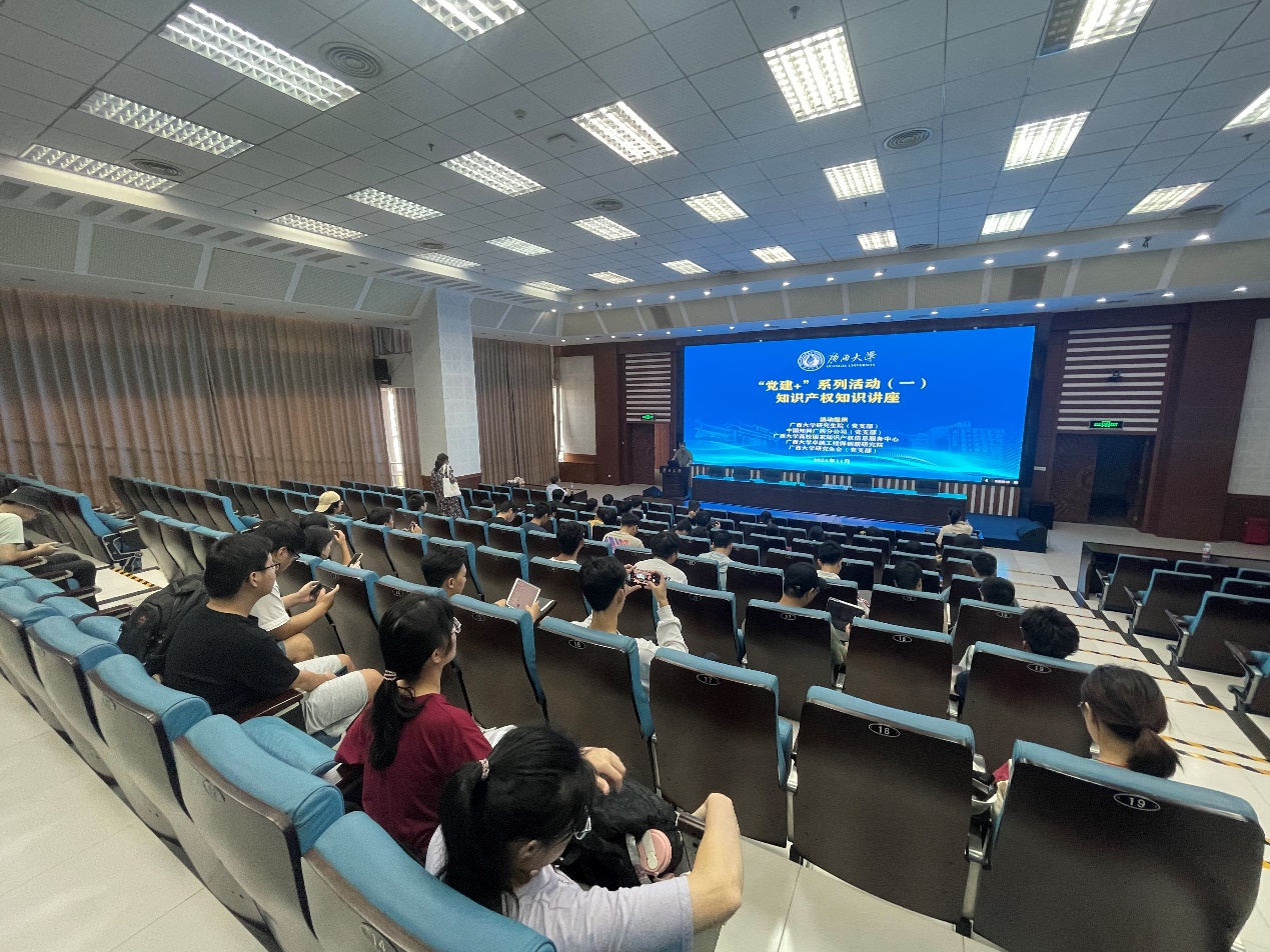 鉴于在创新驱动发展的时代,知识产权作为推动科技进步、经济繁荣和文化传承的重要基石,其重要性日益凸显。为了积极响应国家关于加强知识产权保护、激发创新活力的号召,11月7日,研究院党支部牵头,联合中国知网广西分公司(党支部)、beat365手机版官网入口高校国家知识产权信息服务中心、beat365手机版官网入口卓越工程师创新研究院、beat365手机版官网入口研究生会党支部共同举办“党建+”活动,邀请到同方知网数字出版技术有限公司专利产品线专家,为我校师生做《AI Pat+助力知识产权申请和保护》的专题讲座。来自各学院约百名研究生参加活动。