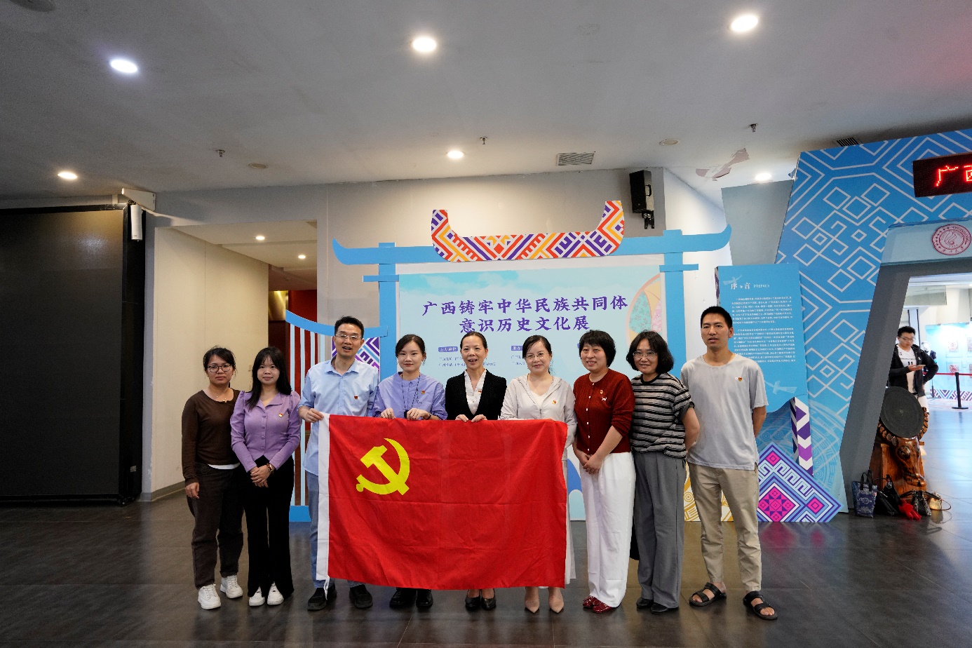 近日,beat365手机版官网入口研究生院党支部组织全体党员及非党员教职工开展 “铸牢中华民族共同体意识” 主题党日活动。大家共同参观了在beat365手机版官网入口大学生活动中心举办的 “行走的广西民族博物馆 — 广西铸牢中华民族共同体意识历史文化展”。