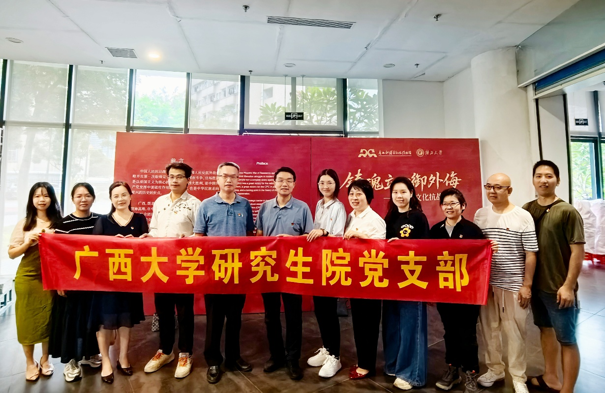 为纪念中国人民抗日战争暨世界反法西斯战争胜利80周年,深切缅怀革命先辈的丰功伟绩,我校与广西壮族自治区博物馆联合举办了“铸魂立心御外侮——广西文化抗战特展”。10月15日上午,研究生院党支部组织全体党员前往大学生活动中心,集体参观了该展览,开展了以“铭记抗战历史,砥砺初心使命”为主题的党日活动。