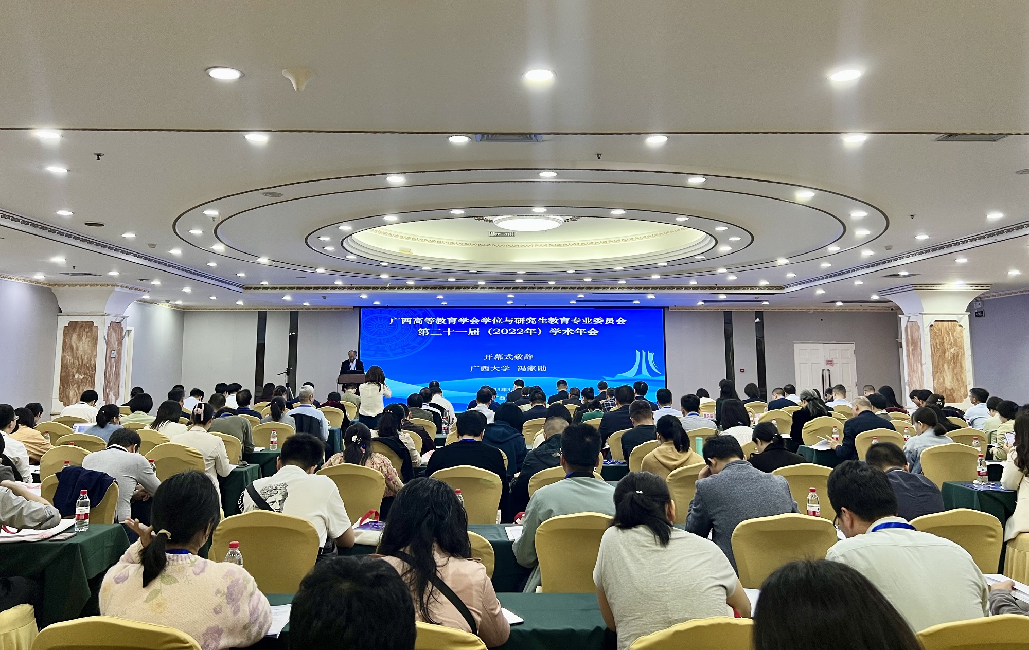 3月11日至13日,由广西高等教育学会学位与研究生教育专业委员会主办、beat365手机版官网入口承办的广西高等教育学会学位与研究生教育专业委员会第二十一届(2022年)学术年会在南宁召开。专委会理事长、我校副校长、教务长冯家勋,自治区教育厅学位管理与研究生教育处处长傅源方出席会议。会议由专委会秘书长、我校副教务长、研究生院院长刘小玲主持。
