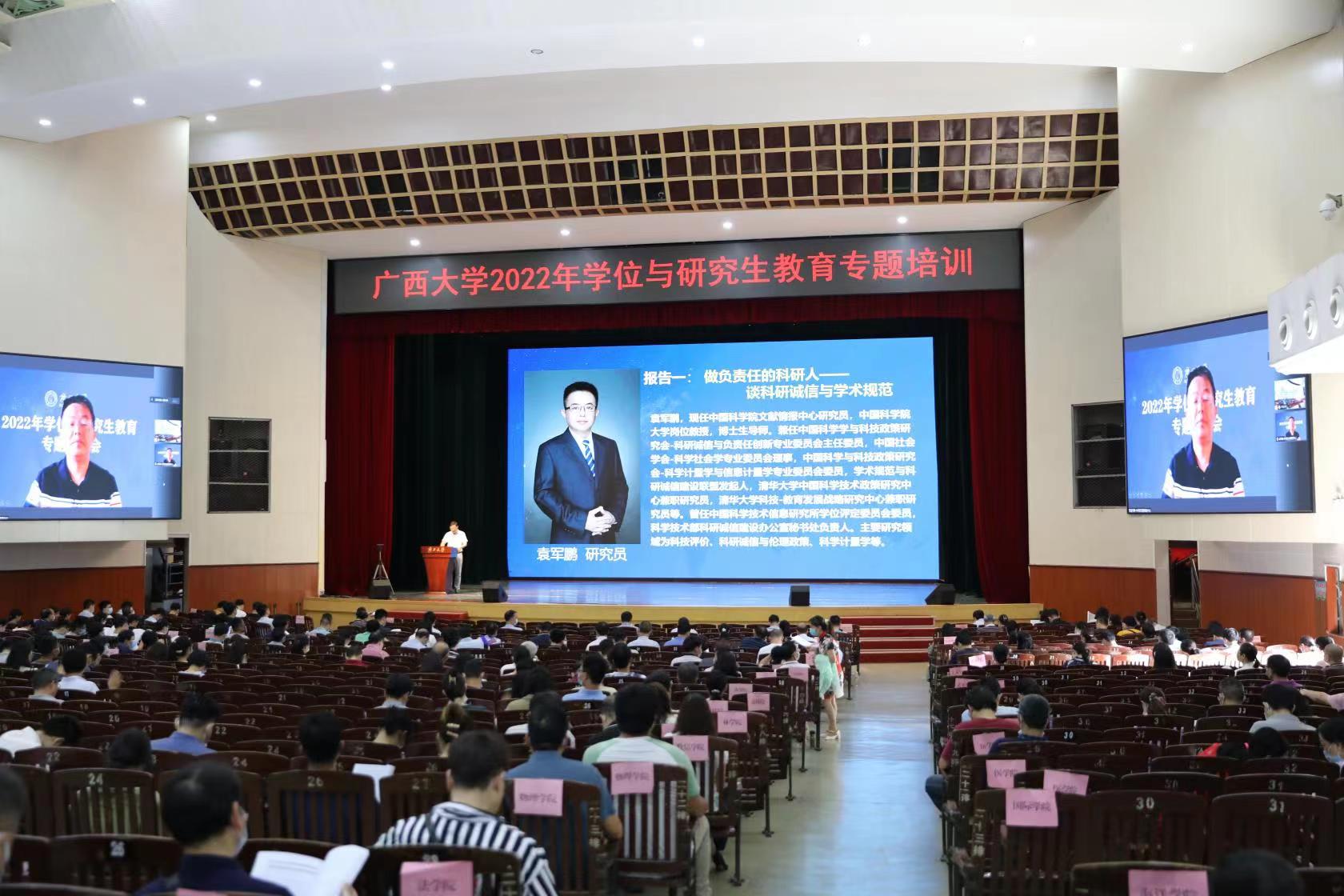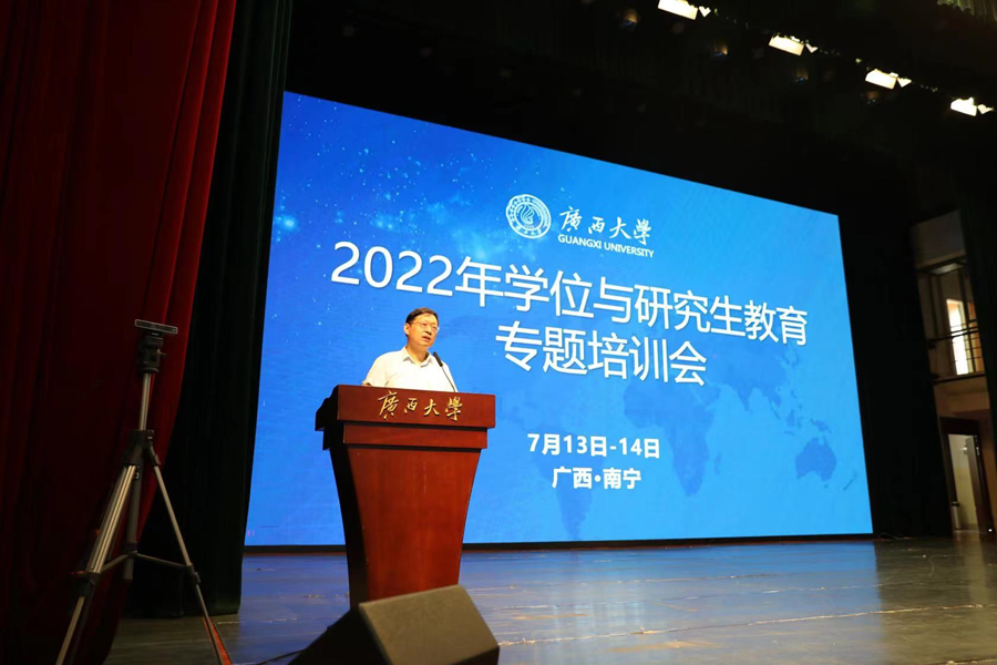 7月13至14日,我校在大礼堂举办2022年学位与研究生教育专题培训会。校长助理、研究生院院长童张法主持会议。校学位评定委员会委员,各学院学位评定分委员会委员、学位点建设负责人、研究生教育分管负责人、研究生导师代表、研究生秘书,研究生院全体工作人员以及相关部门代表约500人参加培训会。
