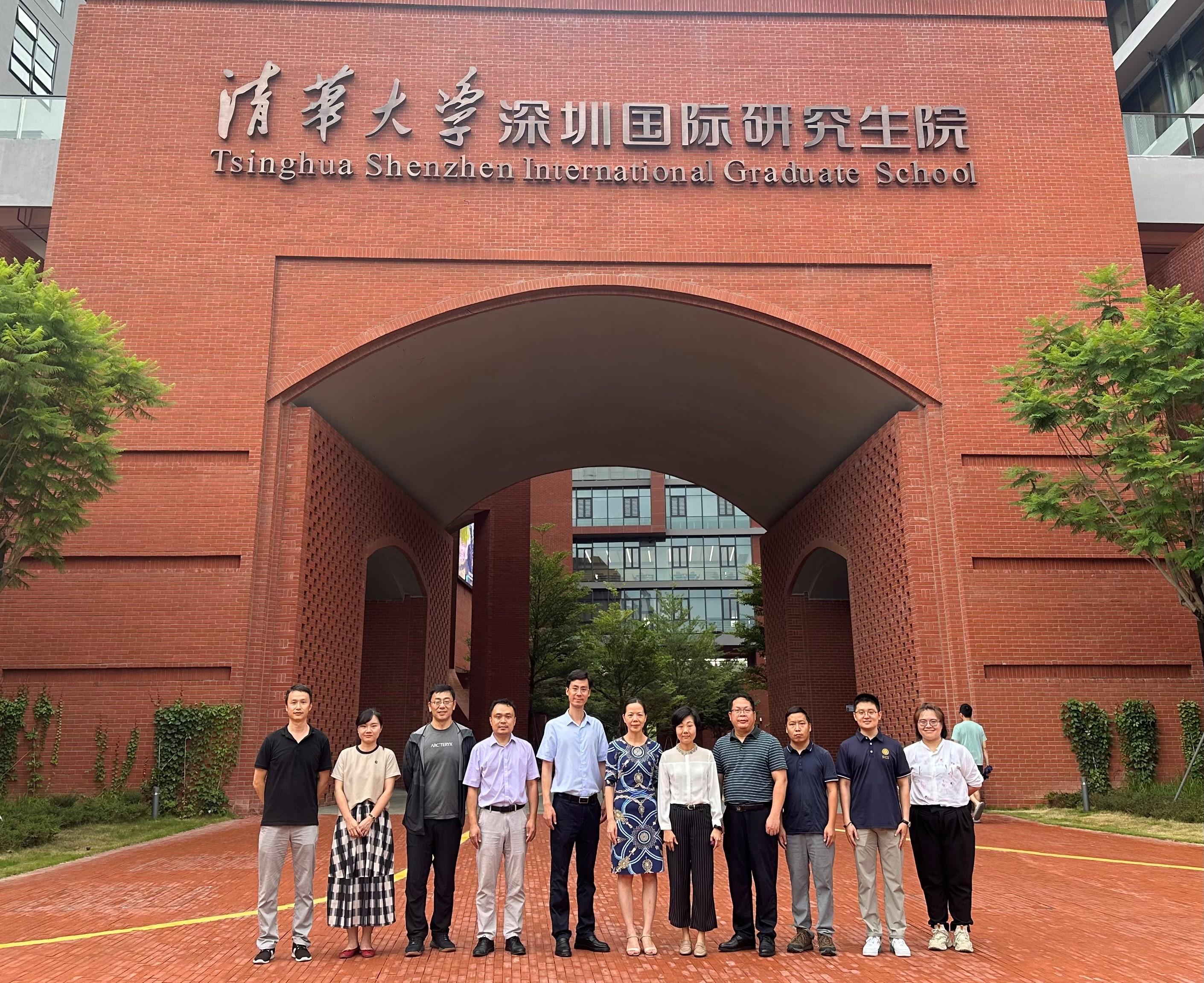 为推进河池市与beat365手机版官网入口共建的beat365手机版官网入口巴马产教融合研究院更好地服务“世界长寿之乡”广西巴马的大健康产业发展,充分发挥政产学研用的新融合模式优势,服务广西全面推进实施乡村振兴战略,2023年6月14-15日,河池市科技局党组书记田寒露,巴马国际旅游区投资发展(集团)有限公司党委书记、董事长张秋文,我校副教务长、研究生院院长刘小玲一行前往清华大学深圳国际研究生院,深入调研其机构设置与运行管理、一期项目整体设计与建造、研究生联合培养等方面的举措和经验,实地参观了清华大学深圳国际研究生院生物医药与健康工程研究院的科研平台、学生宿舍、智慧教室等设施和场所。