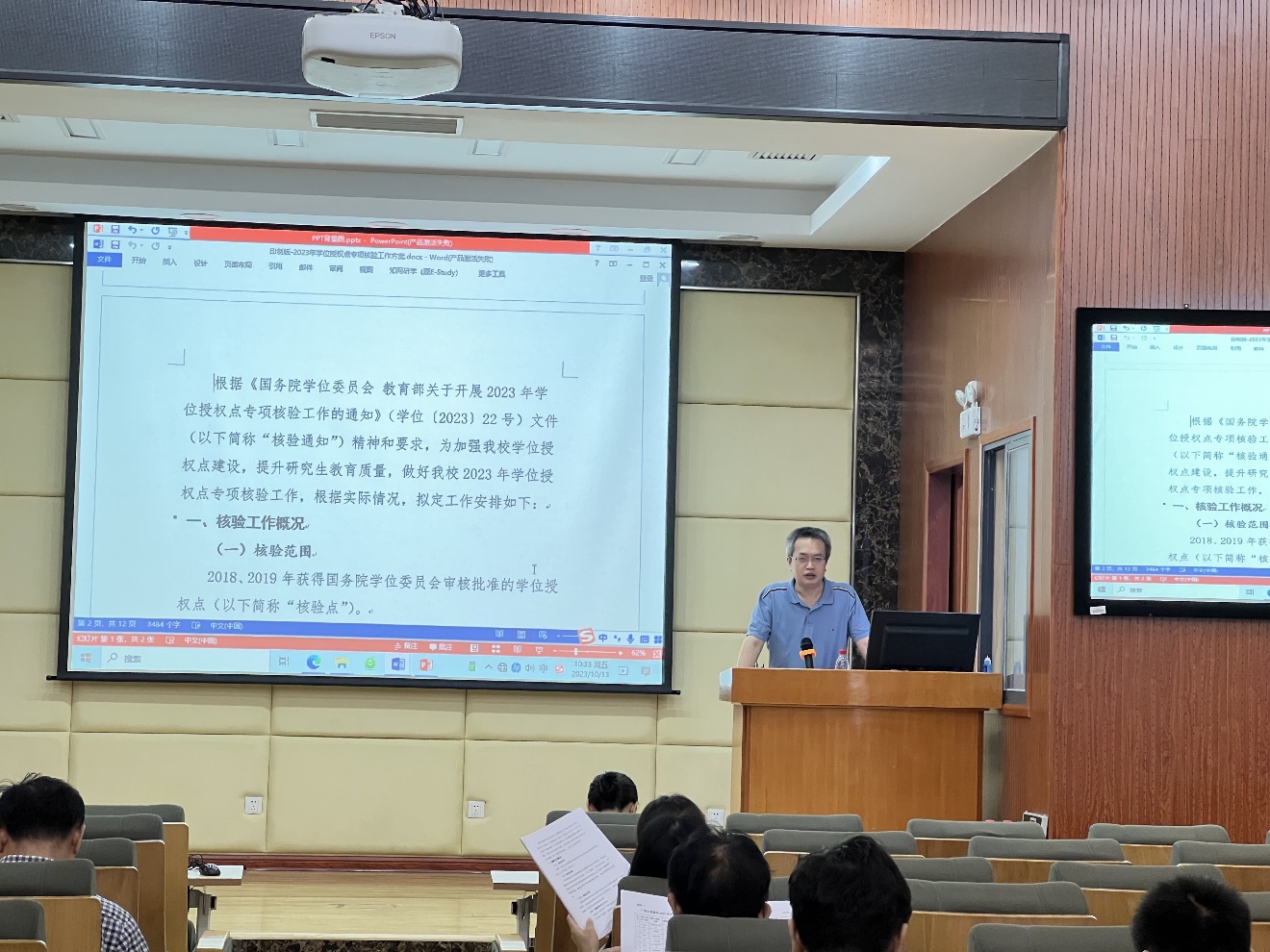 研究生院副院长陈宁江就我校本次学位授权点专项核验的工作方案进行了说明。他介绍了核验工作总体概况,说明工作要求和进度计划,对关键时间节点和关键事项进行了强调,并就学位授权点基本状态信息表的填报注意事项进行了解读。