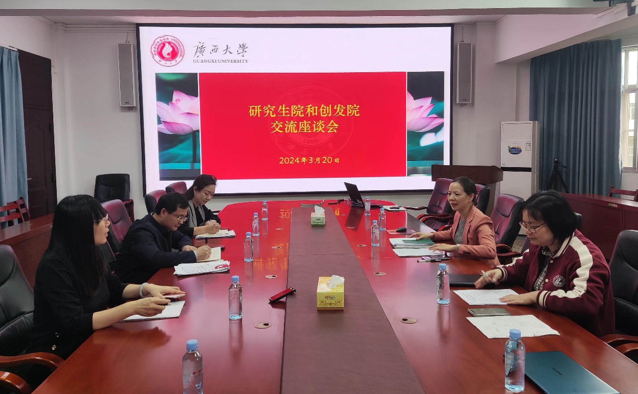 3月20日,广西创新发展研究院执行院长梁运文率领工作人员到研究生院开展交流座谈。该次调研主要是积极探索智库建设为服务我校教育事业发展的途径。副教务长、研究生院院长刘小玲陪同并主持交流会。
