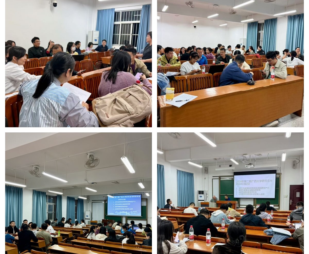在分组讨论环节,新遴选导师围绕研究生教育如何有效促进新质生产力发展、研究生教育全流程培养思考、构建和谐导学关系、教学科研相长促进育人成效等议题进行研讨交流。各组讨论热烈充分,提出了富有建设性的意见建议,深化了对研究生教育议题的理解和认识。陈宁江作培训会总结,指出本次培训会为新导师提供了一次综合学习和交流的难得机会,希望导师能够学以致用,为研究生教育内涵式发展和高质量人才培养贡献智慧和力量。