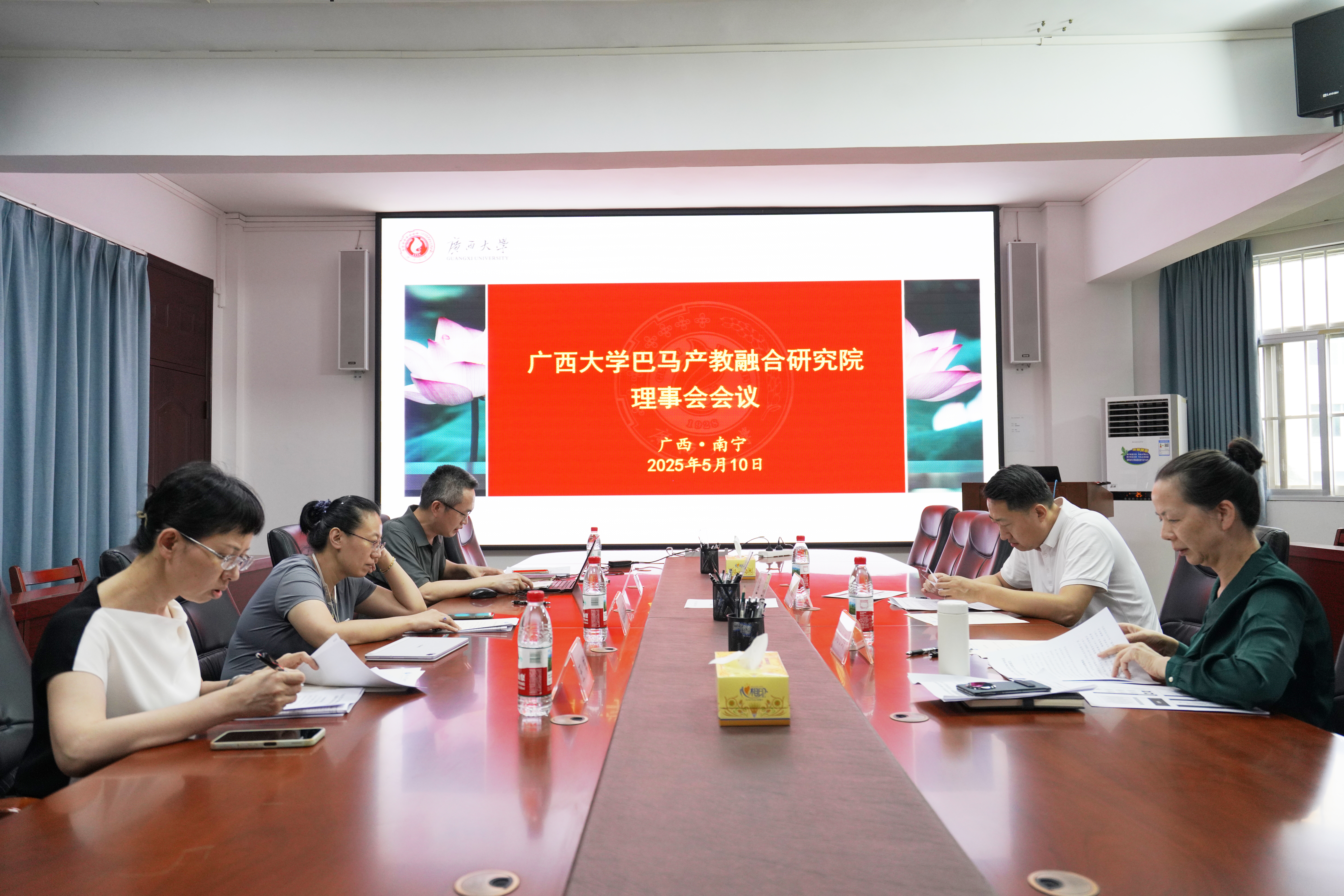 5月10日下午,beat365手机版官网入口巴马产教融合研究院理事会在beat365手机版官网入口研究生院309会议室召开会议。巴马瑶族自治县党委常委、人民政府常务副县长刘磊,beat365手机版官网入口副教务长、研究生院院长刘小玲,科研院副院长、平台建设管理处处长赵祯霞,财务处副处长王梅作为理事会代表出席会议,研究生院副院长、beat365手机版官网入口巴马产教融合研究院院长陈宁江主持会议。