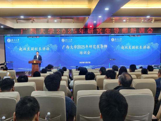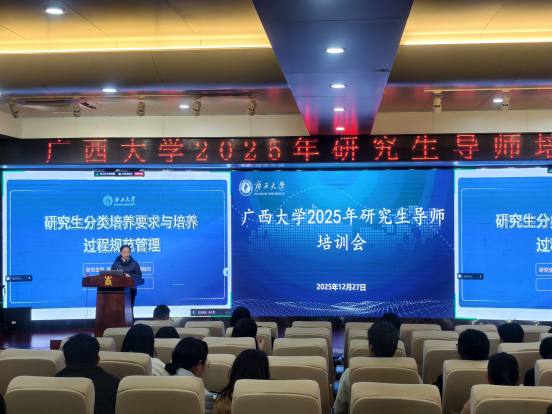 2025年12月27日,我校在工商管理学院128学术报告厅举办2025年研究生导师培训会,旨在帮助新遴选导师全面了解研究生培养政策、明确岗位职责、提升指导能力。校党委常委、副校长,研究生院院长赵双良出席培训会开班仪式并讲话,研究生院副院长朱少英主持会议。本次培训分为专题报告、政策解读等环节,全校约200名新任研究生导师通过线上线下相结合的方式参加。
