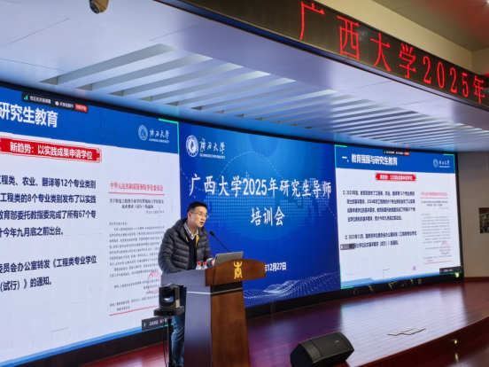 在专题报告环节,研究生院常务副院长彭林欣系统介绍了我校学位与研究生教育的基本情况,围绕“做好研究生成长成才的引路人”主题,阐述了导师在思想引领、学术指导、成长关怀等方面的核心责任。