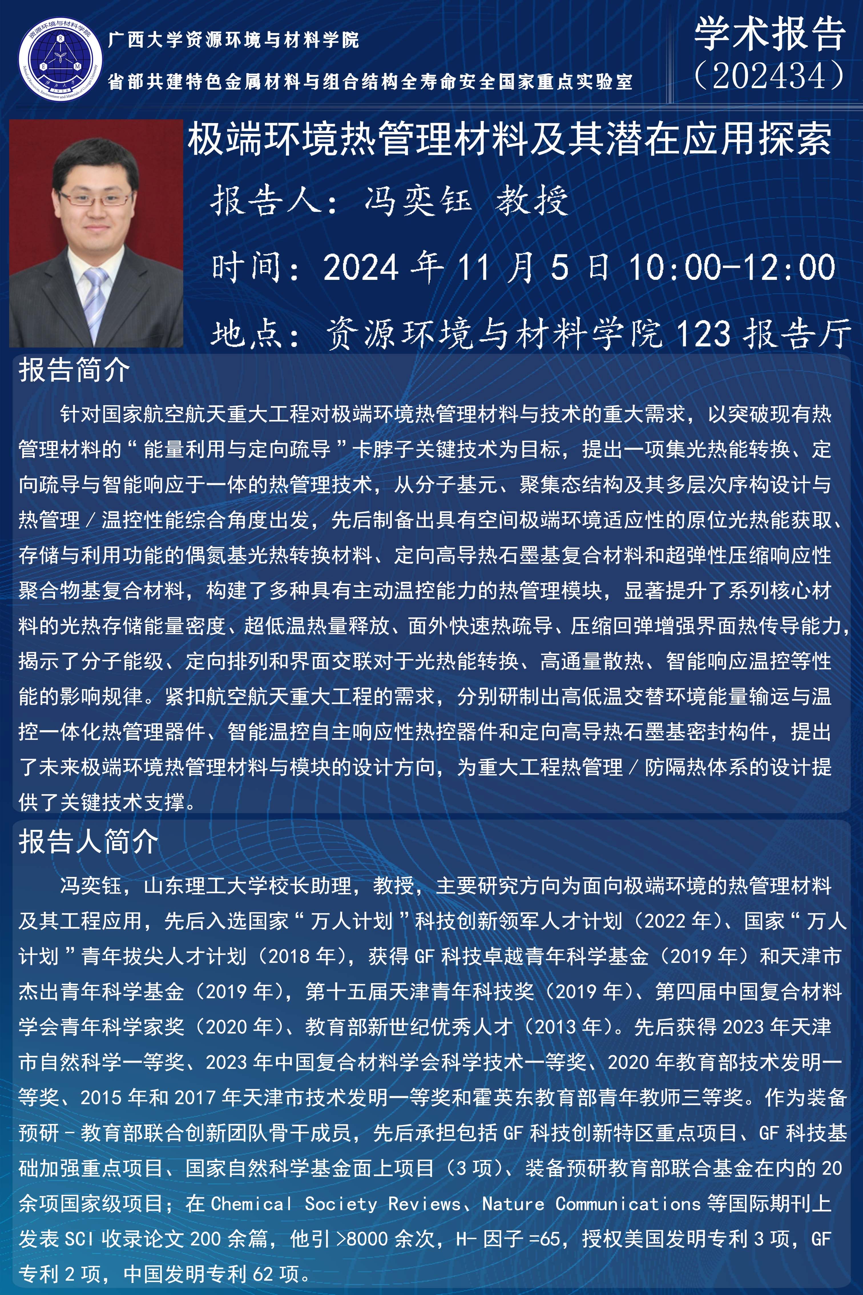 资源环境与材料学院学术报告:极端环境热管理材料及其潜在应用探索