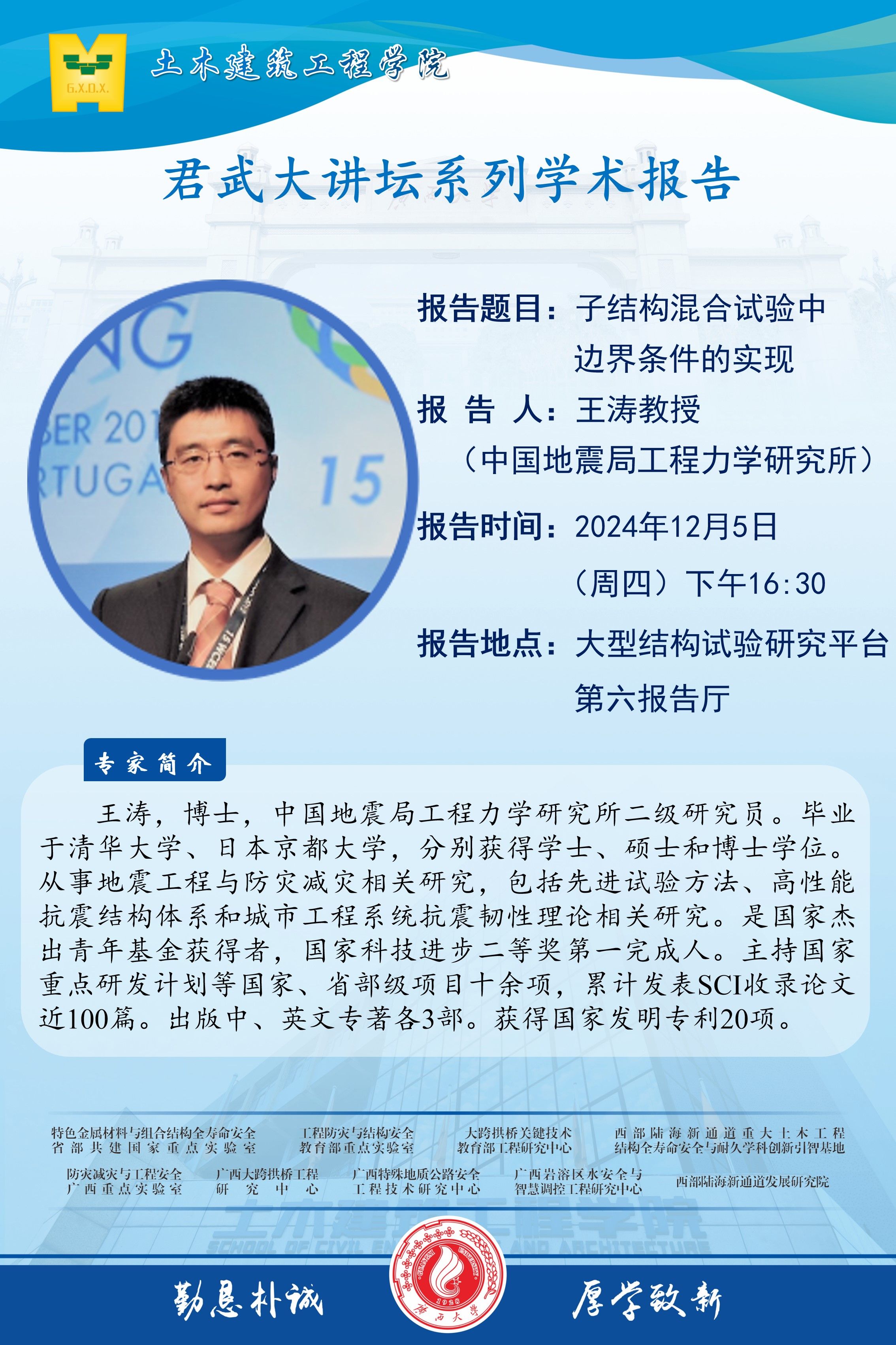 君武大讲坛:子结构混合试验中边界条件的实现