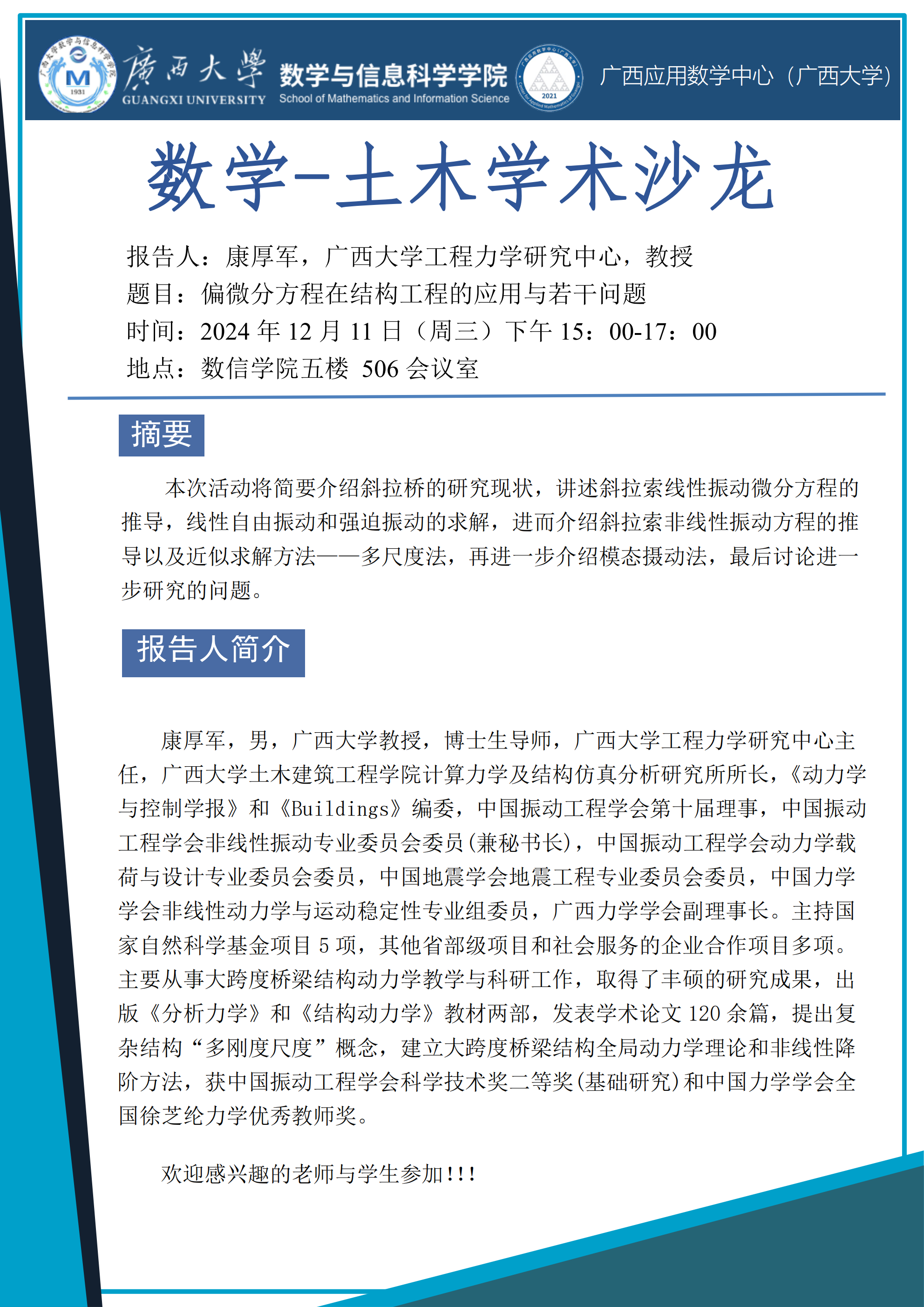 数学-土木学术沙龙:偏微分方程在结构工程的应用与若干问题