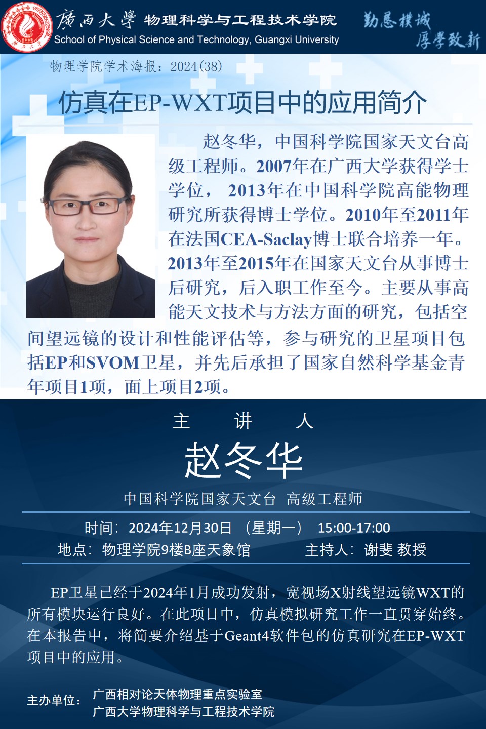 物理科学与工程技术学院学术报告:仿真在EP-WXT项目中的应用简介