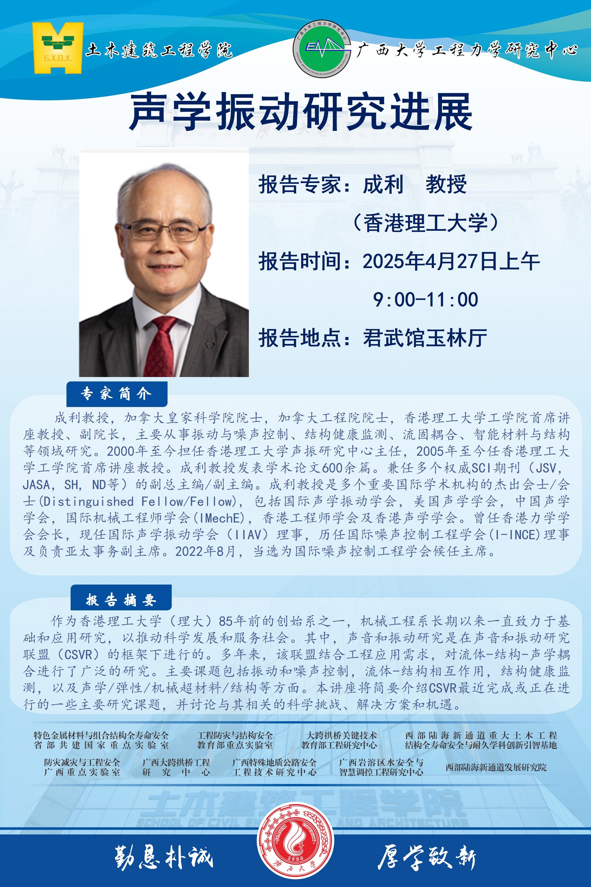 土木建筑工程学院、工程力学研究中心学术报告:声学振动研究进展