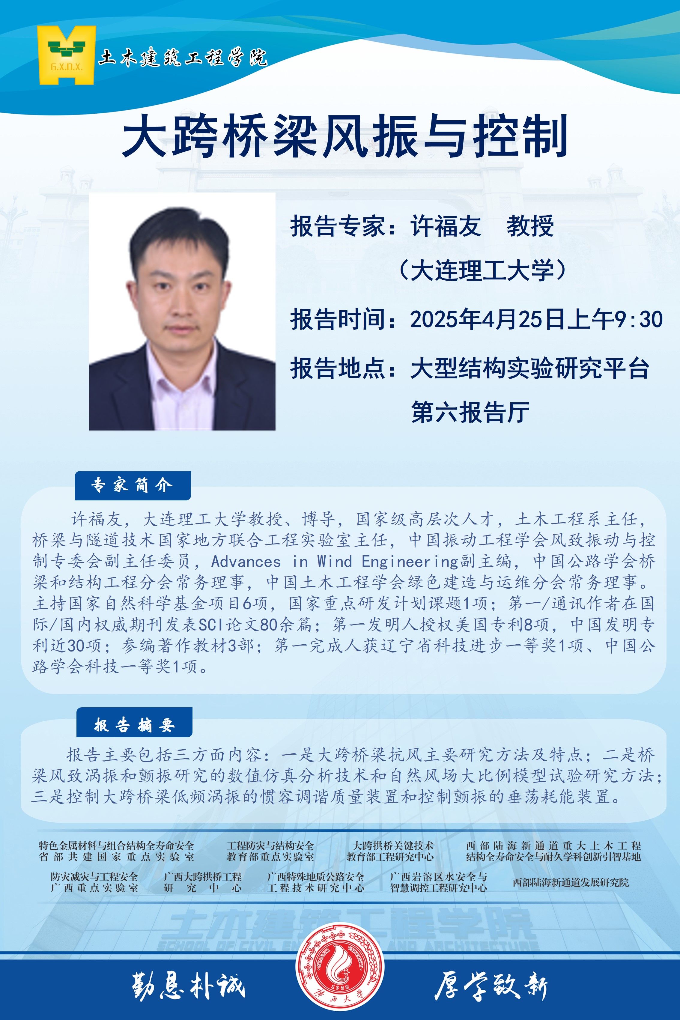 土木建筑工程学院学术报告:大跨桥梁风振与控制