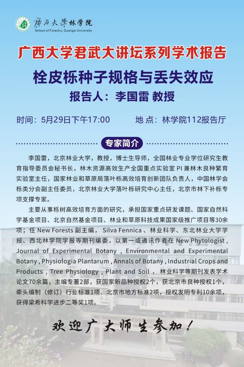 君武大讲坛:栓皮栎种子规格与丢失效应