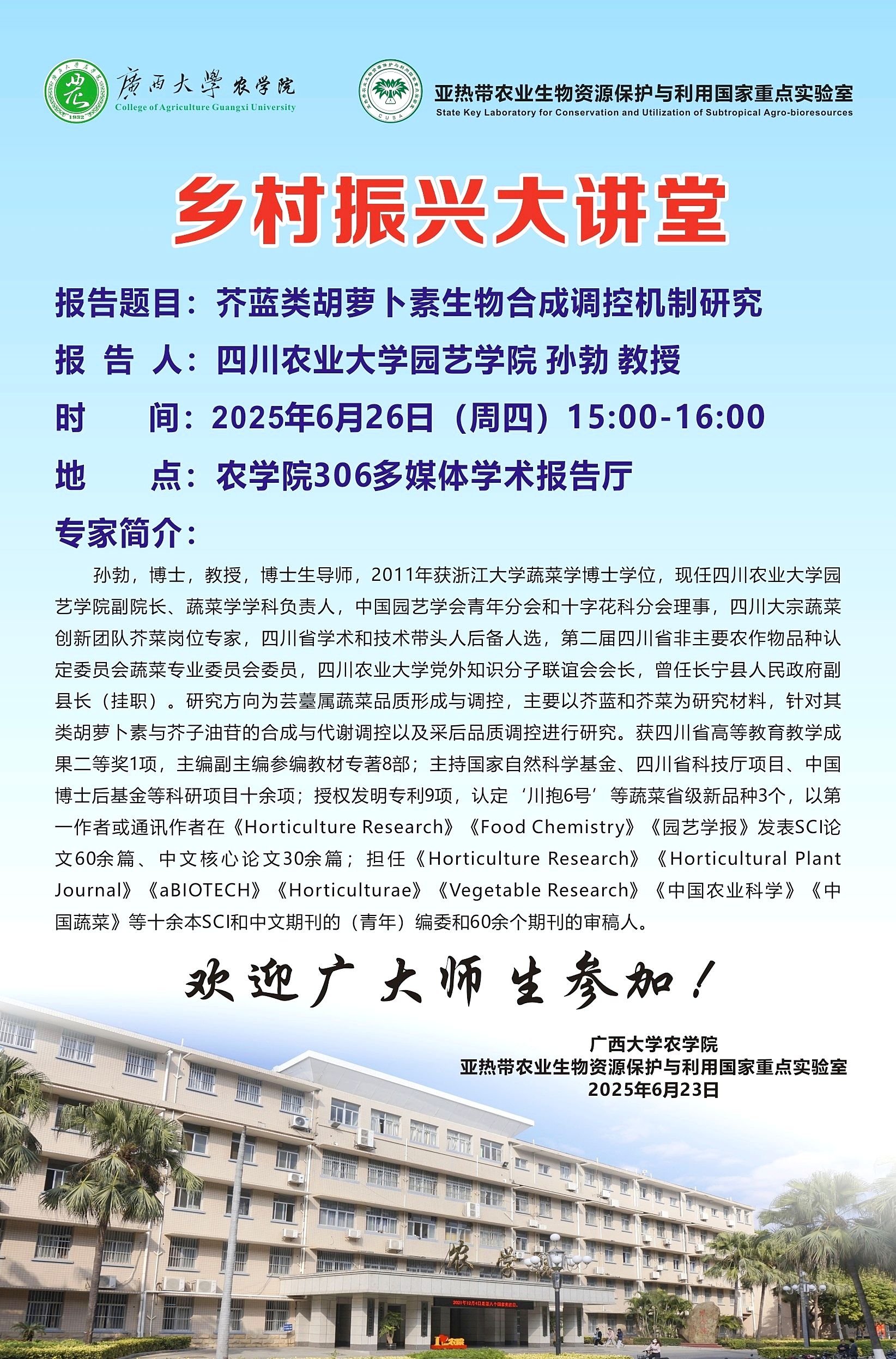 乡村振兴大讲堂:芥蓝类胡萝卜素生物合成调控机制研究