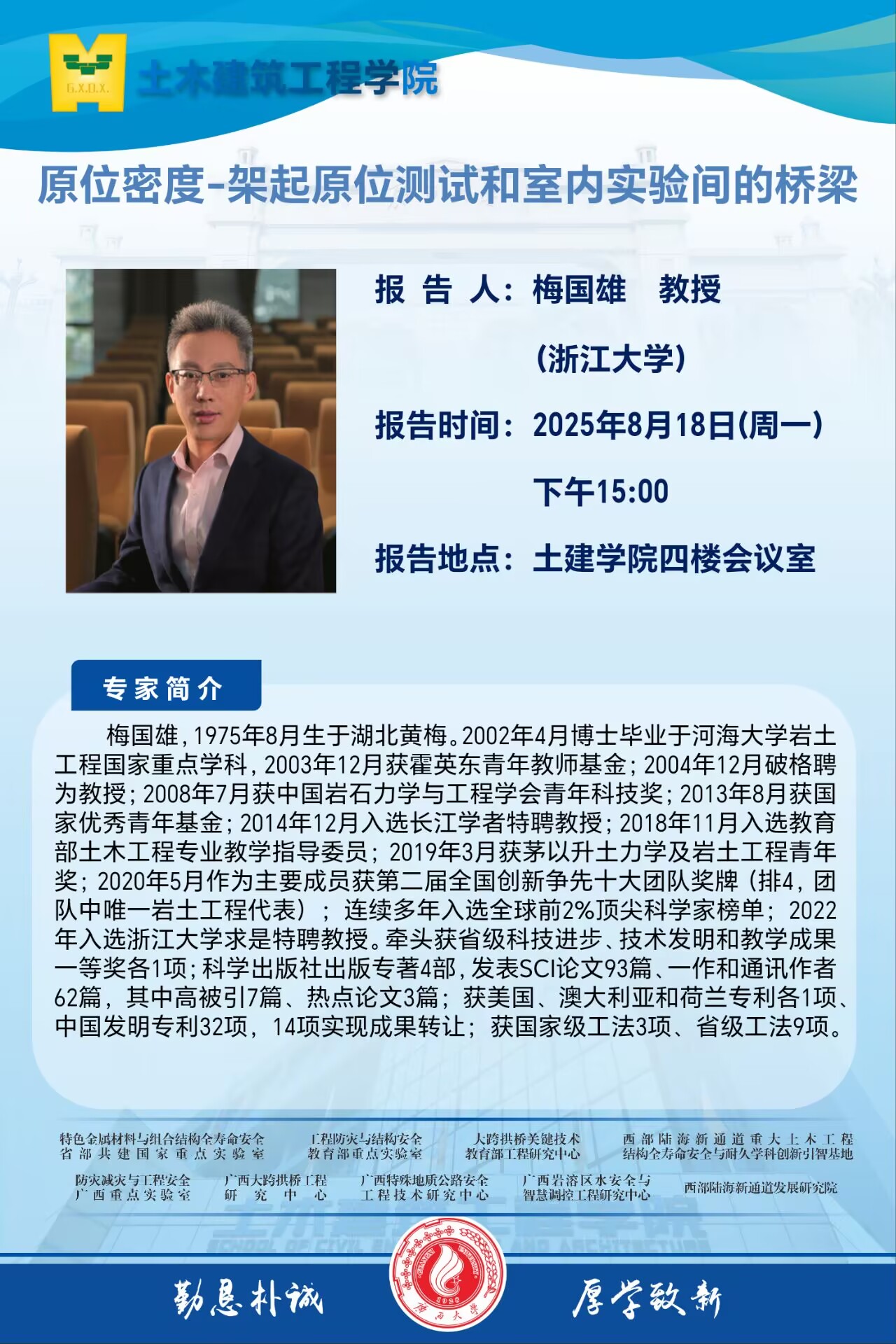 土建学院学术报告:原位密度—架起原位测试和室内实验间的桥梁