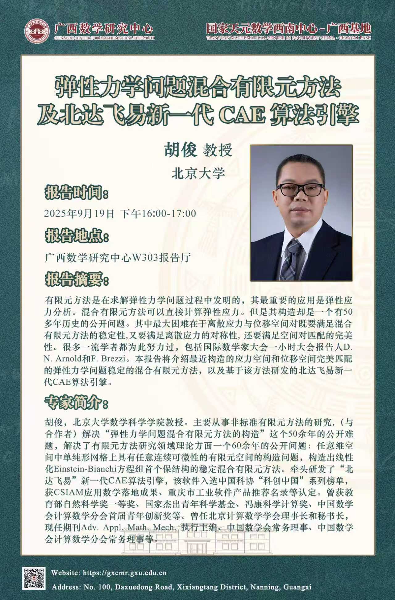 国家天元数学西南中心-广西基地、广西数学研究中心学术报告:弹性力学问题混合有限元方法及北达飞易新一代 CAE算法引擎