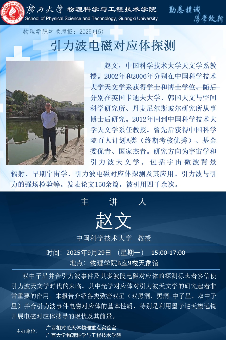 物理科学与工程技术学院学术报告:引力波电磁对应体探测