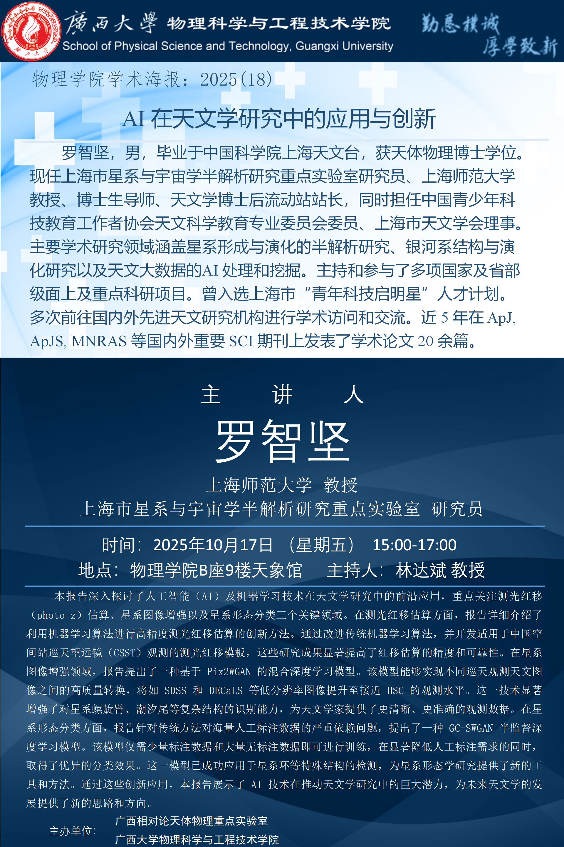 物理科学与工程技术学院学术报告:AI 在天文学研究中的应用与创新