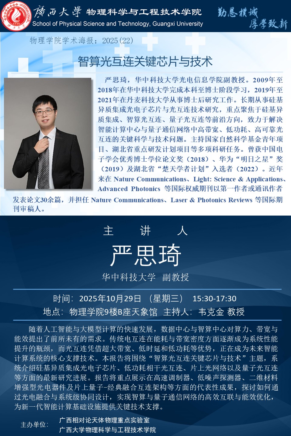 物理科学与工程技术学院学术报告:智算光互连关键芯片与技术