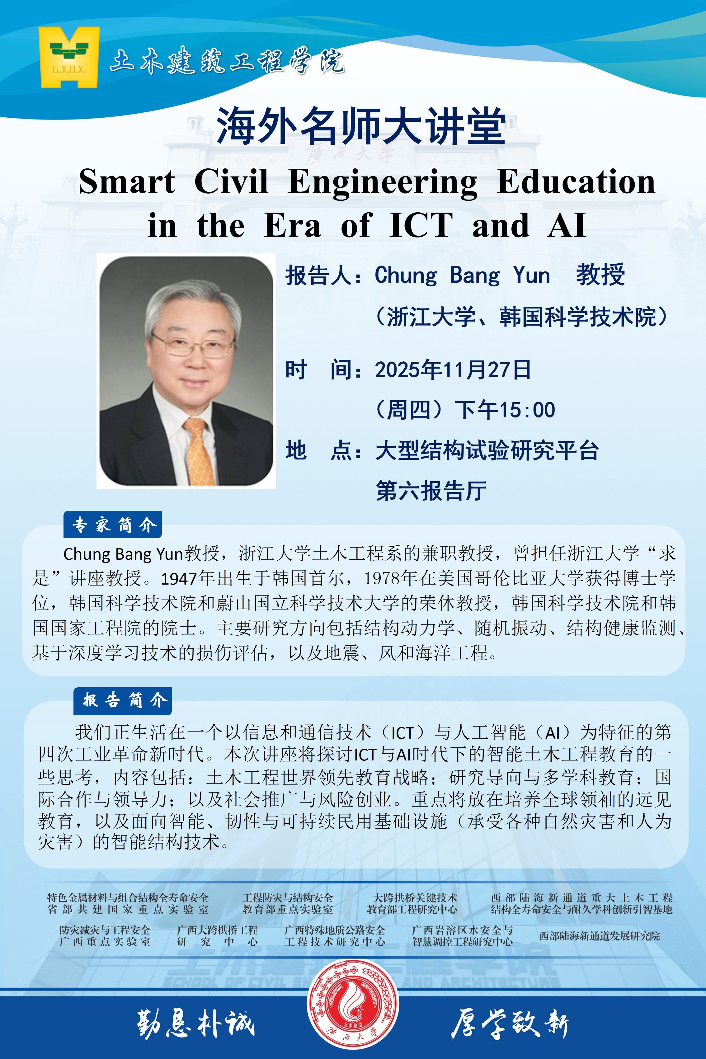 海外名师大讲堂、土木建筑工程学院学术报告:1.Smart Civil Engineering Education in the Era of ICT and AI;2.Structural ...