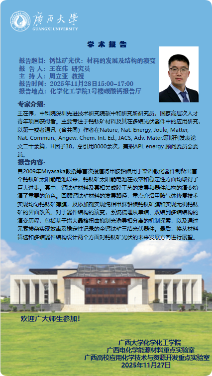 化学化工学院学术报告:钙钛矿光伏:材料的发展及结构的演变