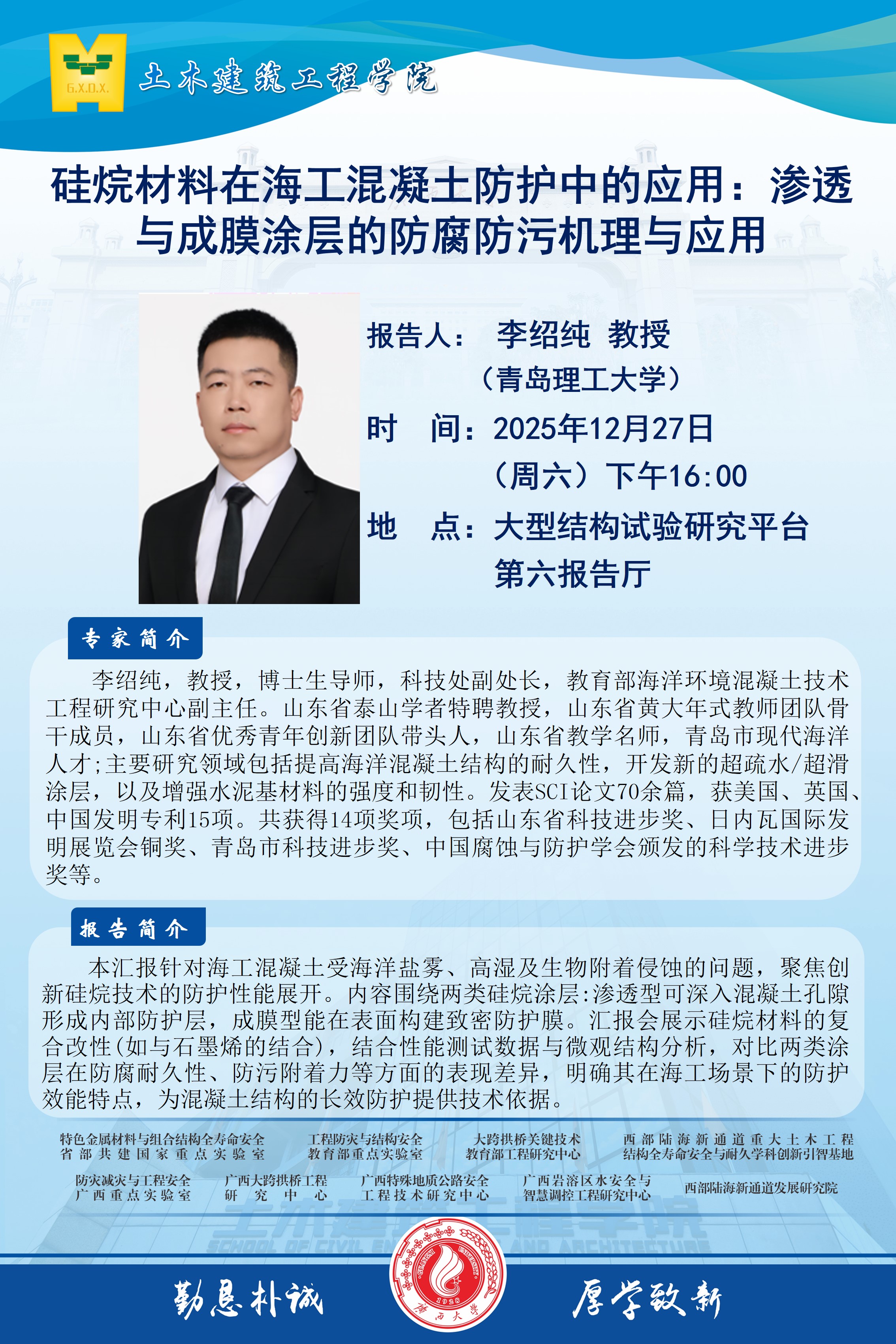 土木建筑工程学院学术报告:硅烷材料在海工混凝土防护中的应用:渗透与成膜涂层的防腐防污机理与应用 ...