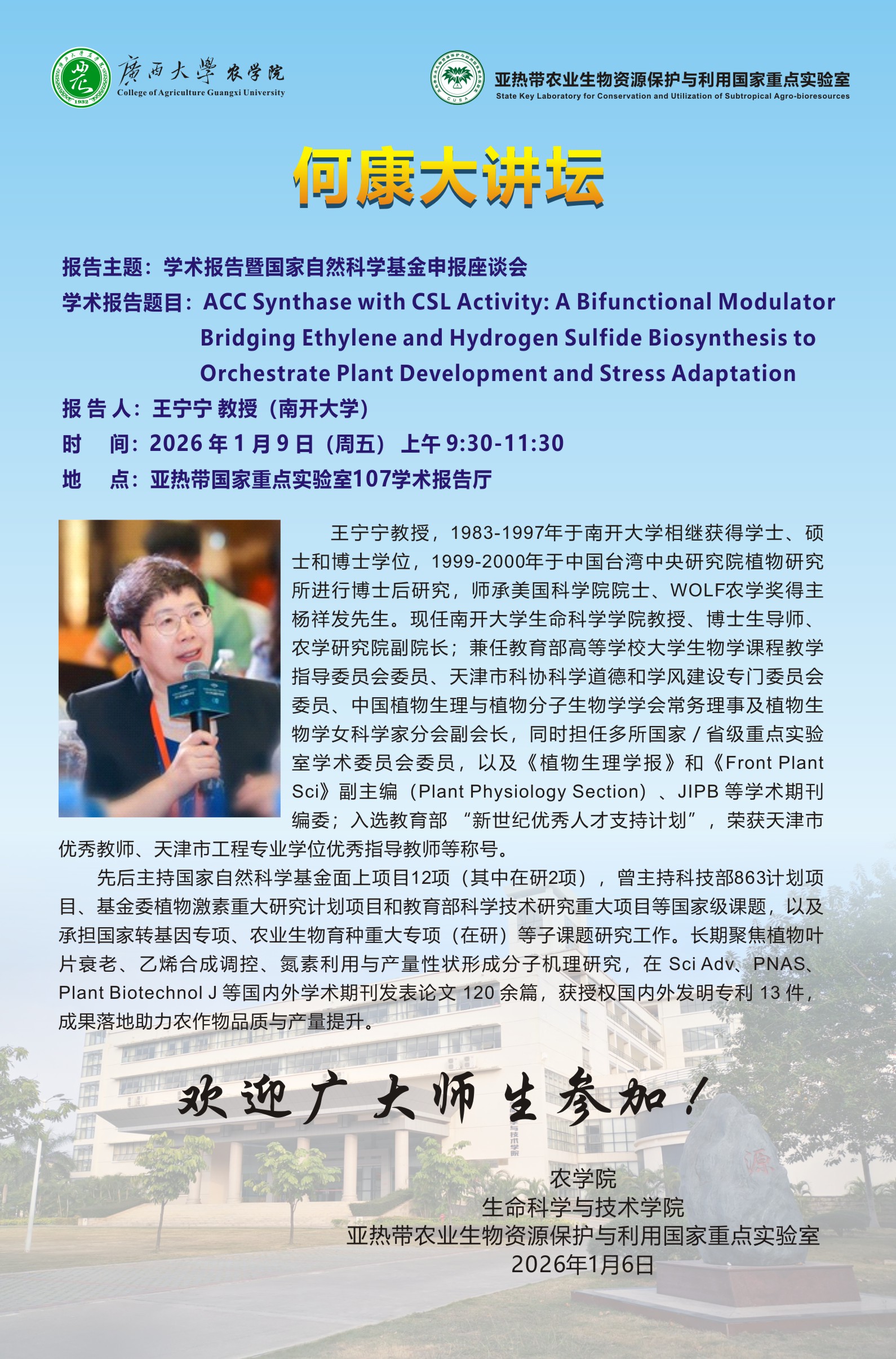 农学院何康大讲坛:学术报告暨国家自然科学基金申报座谈会