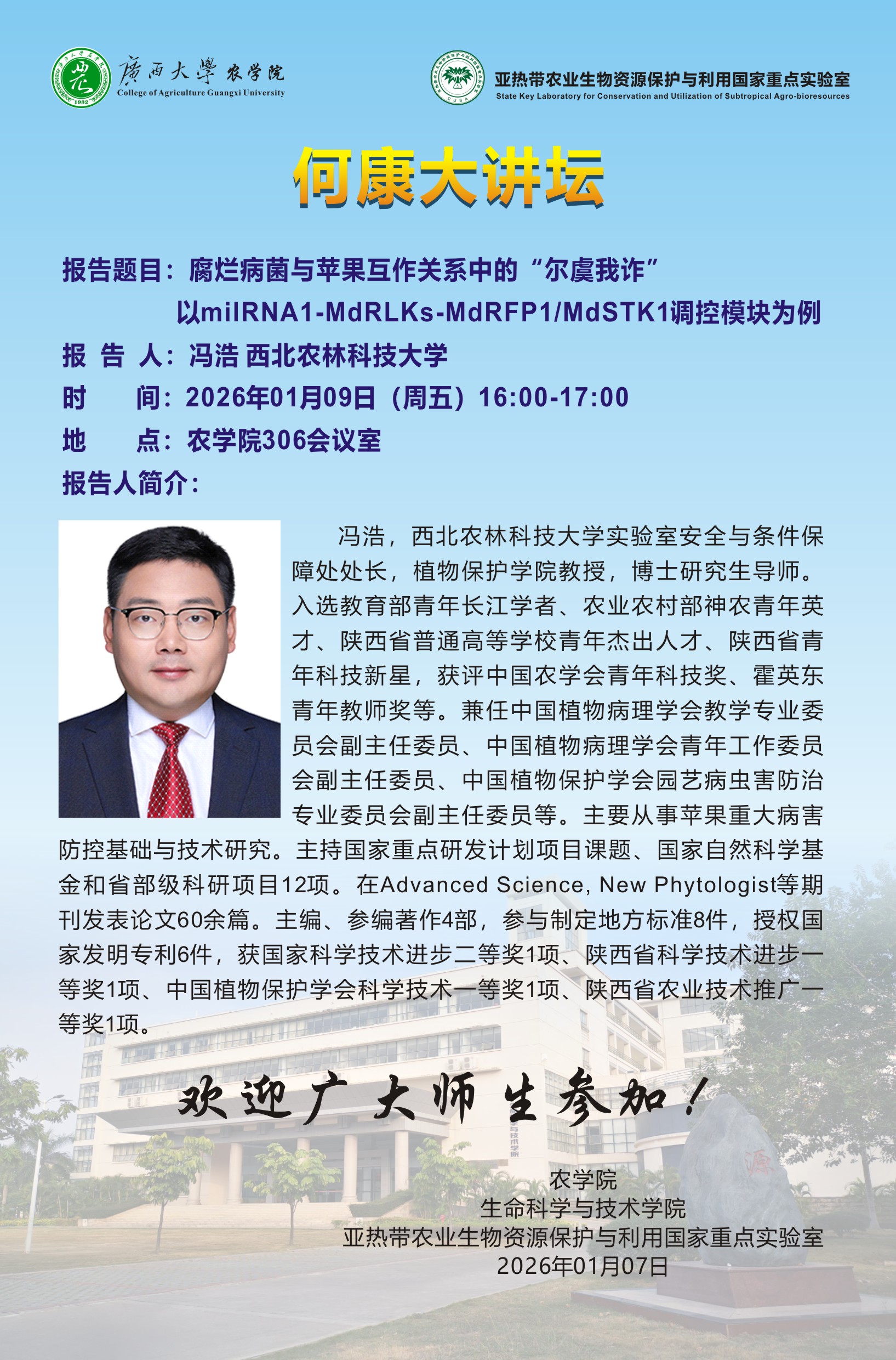 农学院何康大讲坛:腐烂病菌与苹果互作关系中的“尔虞我诈”以milRNA1-MdRLKs-MdRFP1/MdSTK1调控模块为例 ...