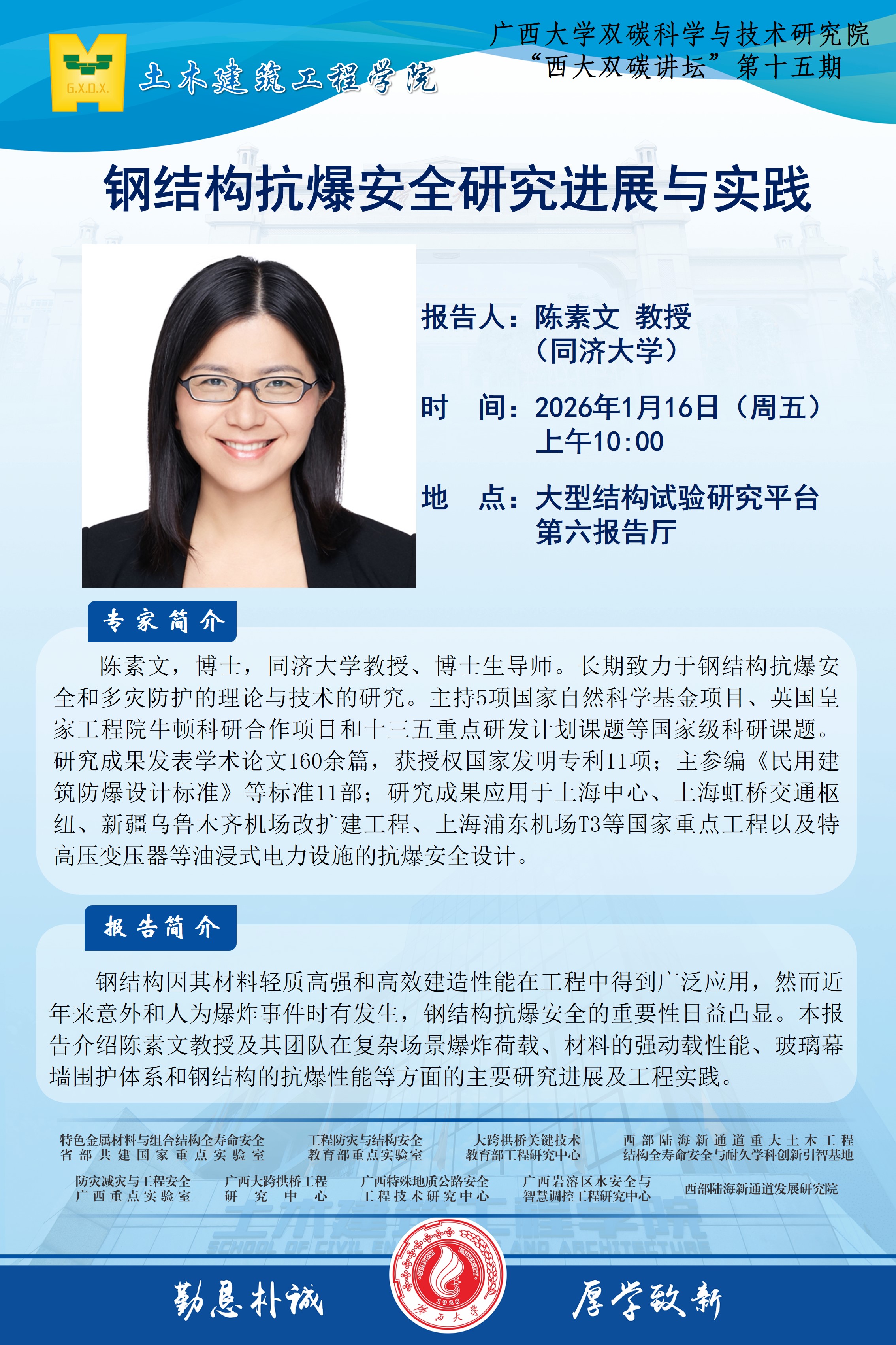 土木建筑工程学院学术报告:钢结构抗爆安全研究进展与实践 ...