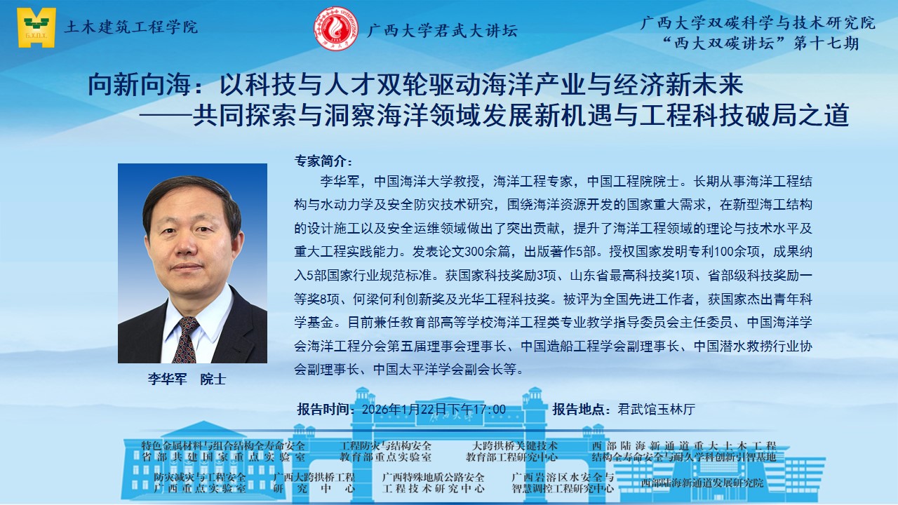 君武大讲坛、土木建筑工程学院学术报告:向新向海:以科技与人才双轮驱动海洋产业与经济新未来 ——共同探索与洞察海洋领域发...